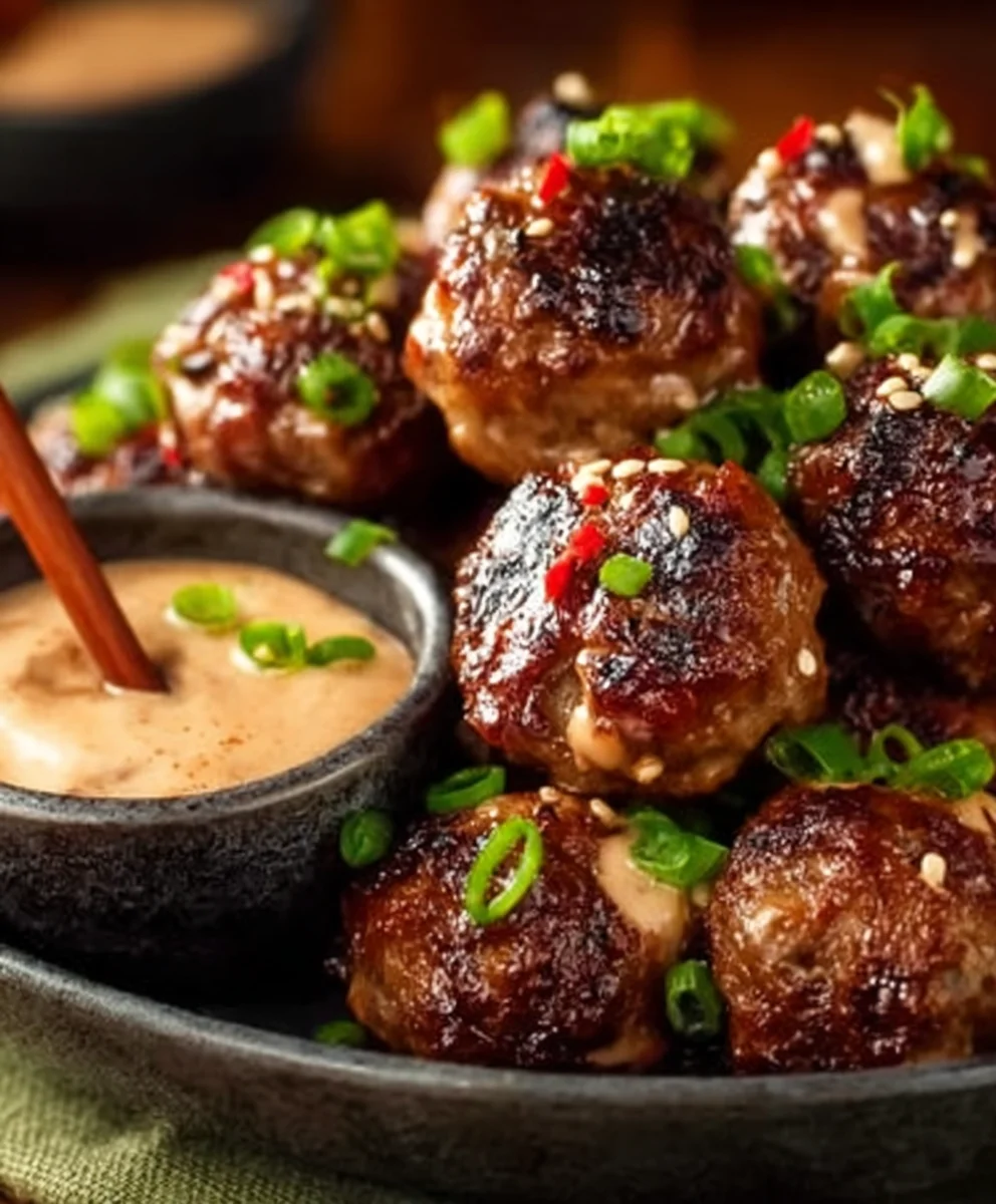 Korean BBQ Beef Meatballs Spicy Mayo Dip Recipe