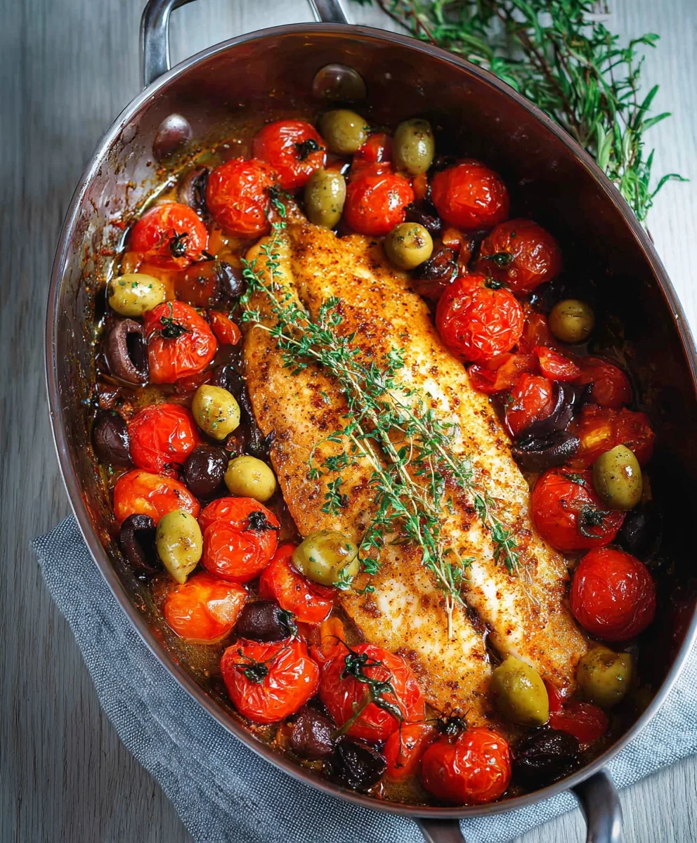 Easy Baked Fish Cherry Tomatoes Olives Recipe