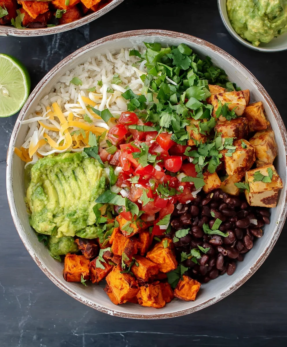 Easy Vegan Burrito Bowls- Black Bean Sweet Potato