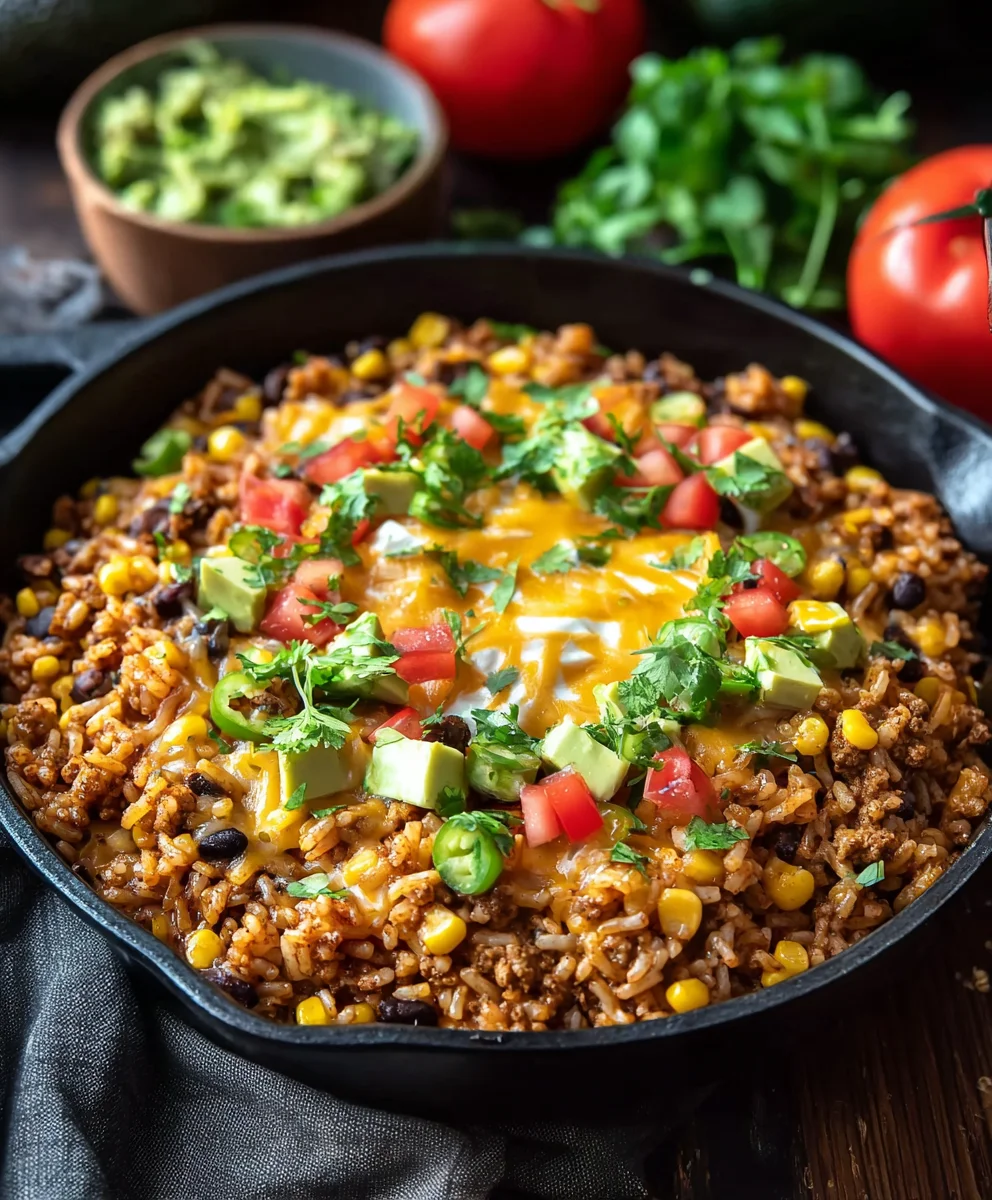 Cheesy Beef Taco Rice Skillet-Quick & Easy Dinner