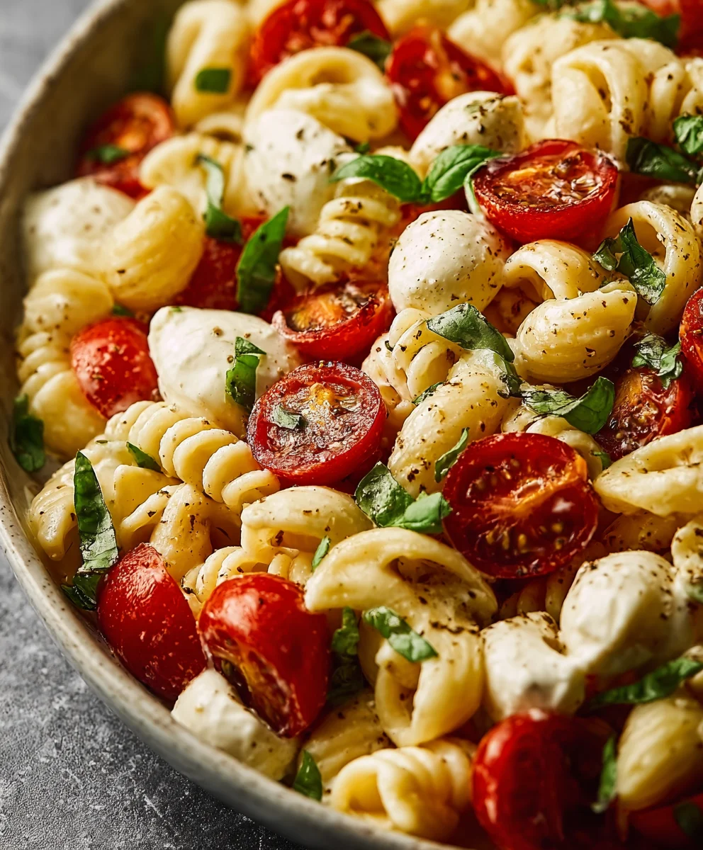 Creamy Caprese Pasta Salad Recipe-Easy & Delicious